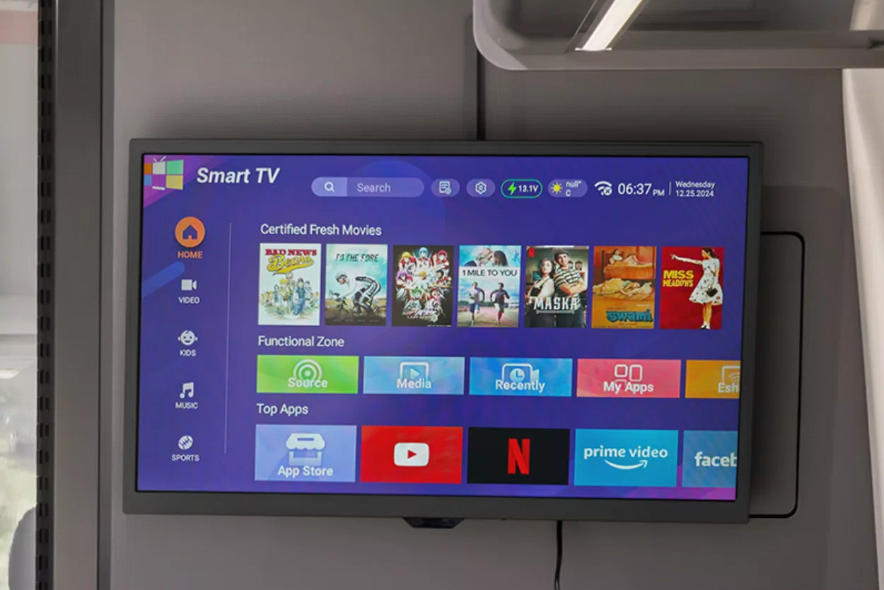 Watch your TV shows on the go with a wall mounted 22″ TV.